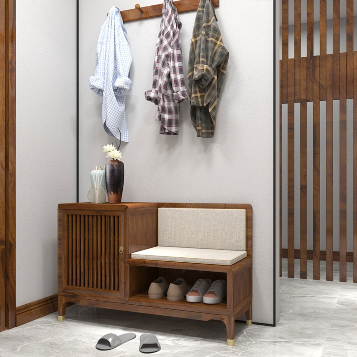 换鞋凳+收纳+更衣+鞋柜的四组合;线条简洁,凝重不失风采,通风透气,适合书本,鞋子等存放。栅栏,看似简单,开与合必须精密计算。