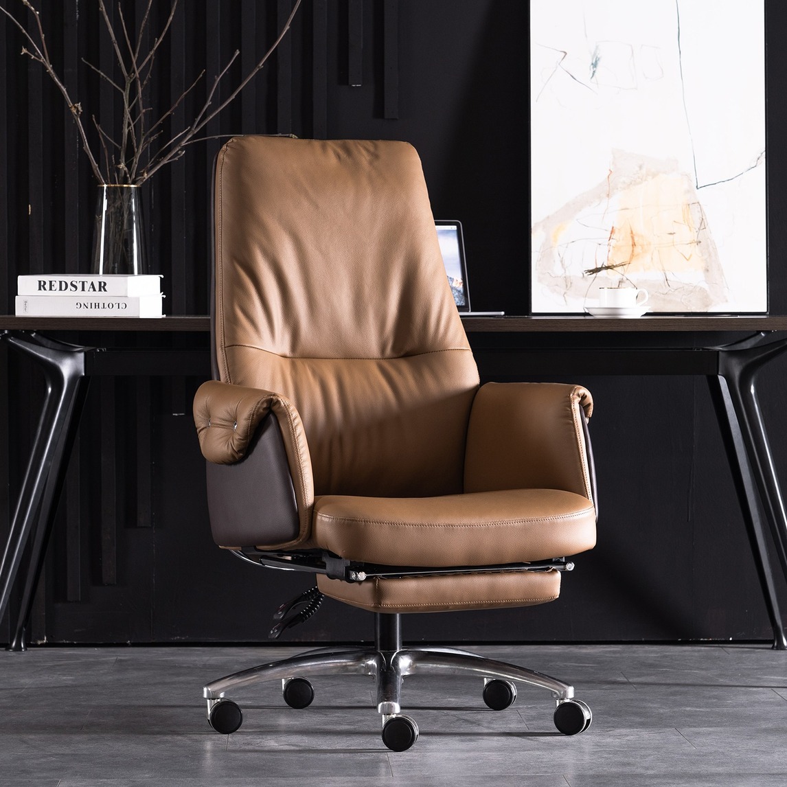 可家用办公室用的电脑椅,牛皮的皮面让办公椅颜色和造型是北欧轻奢,助力提升书房的品质感,接触面的皮舒服,弹性好,正适合久坐一族,特别适合老板和soho。
