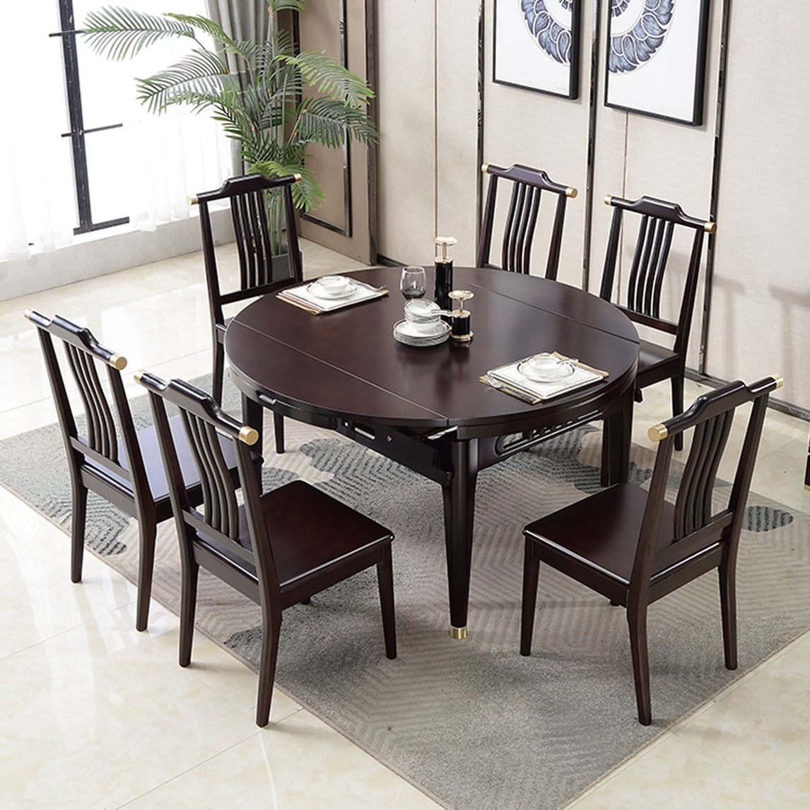 新中式餐桌椅造型大气而豪放,设计师通过对中式传统风格的提炼,将现代审美和传统文化巧妙兼柔,以亦古亦今和简单素雅两种类型巧妙结合。这样设计出来的新中式餐桌椅优雅而高贵,是新中式文化爱好者的首选。