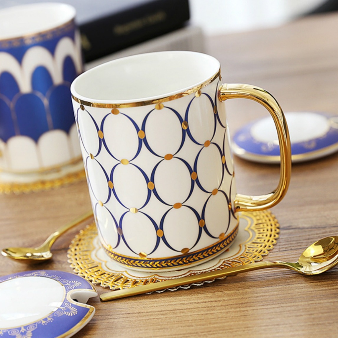 源自英国维多利亚时期。英伦风格有自然、优雅、含蓄、高贵等特点,就像这款水杯,采用手绘宝蓝纹路,杯把和杯身采用手工描金,优雅尊贵。