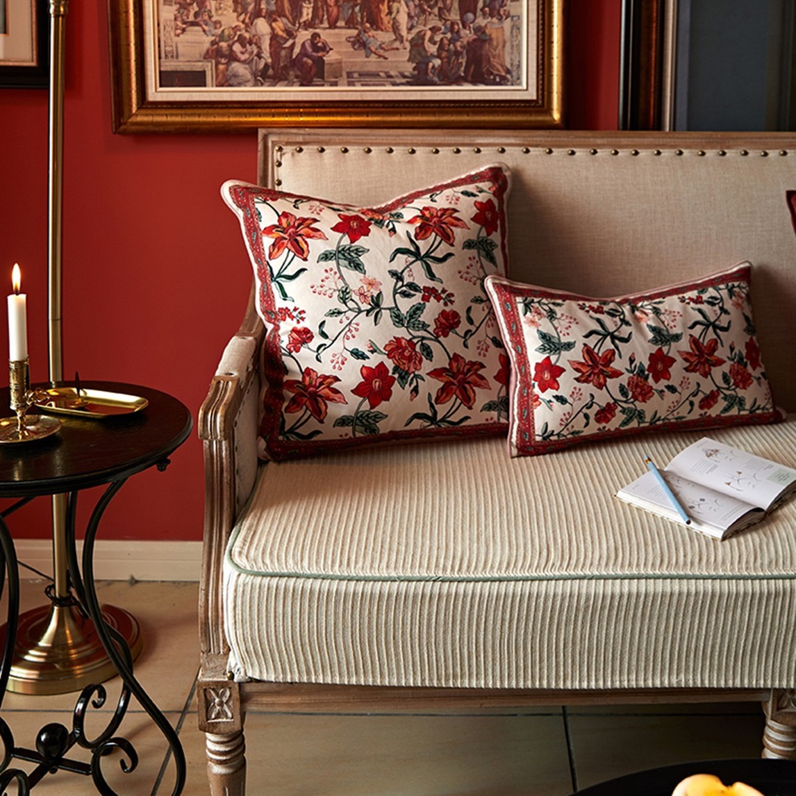 迷人的异域风情在红与白间共舞,令人遐想。面料精选优质麻粘,天然透气且抗静电。花纹中删繁就简,重续美丽,带来家居格调中一抹欢愉