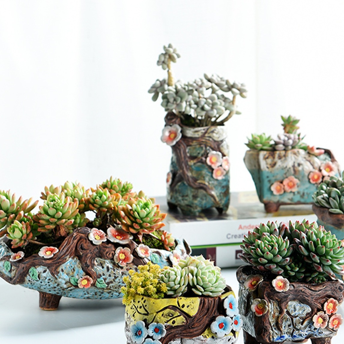 以前一直觉得多肉植物要搭配可爱的卡通花盆,原来多肉植物搭配起复古粗陶拉力,会更加具有气质,像个文艺小公主。