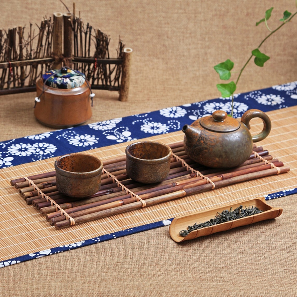 陶瓷复古茶壶透漏着历史的积淀,也是品中国茶的必备器皿。而竹制的茶勺和编织的茶垫搭配,营造一种满桌的复古风,品茶时也别有一番复古风情。
