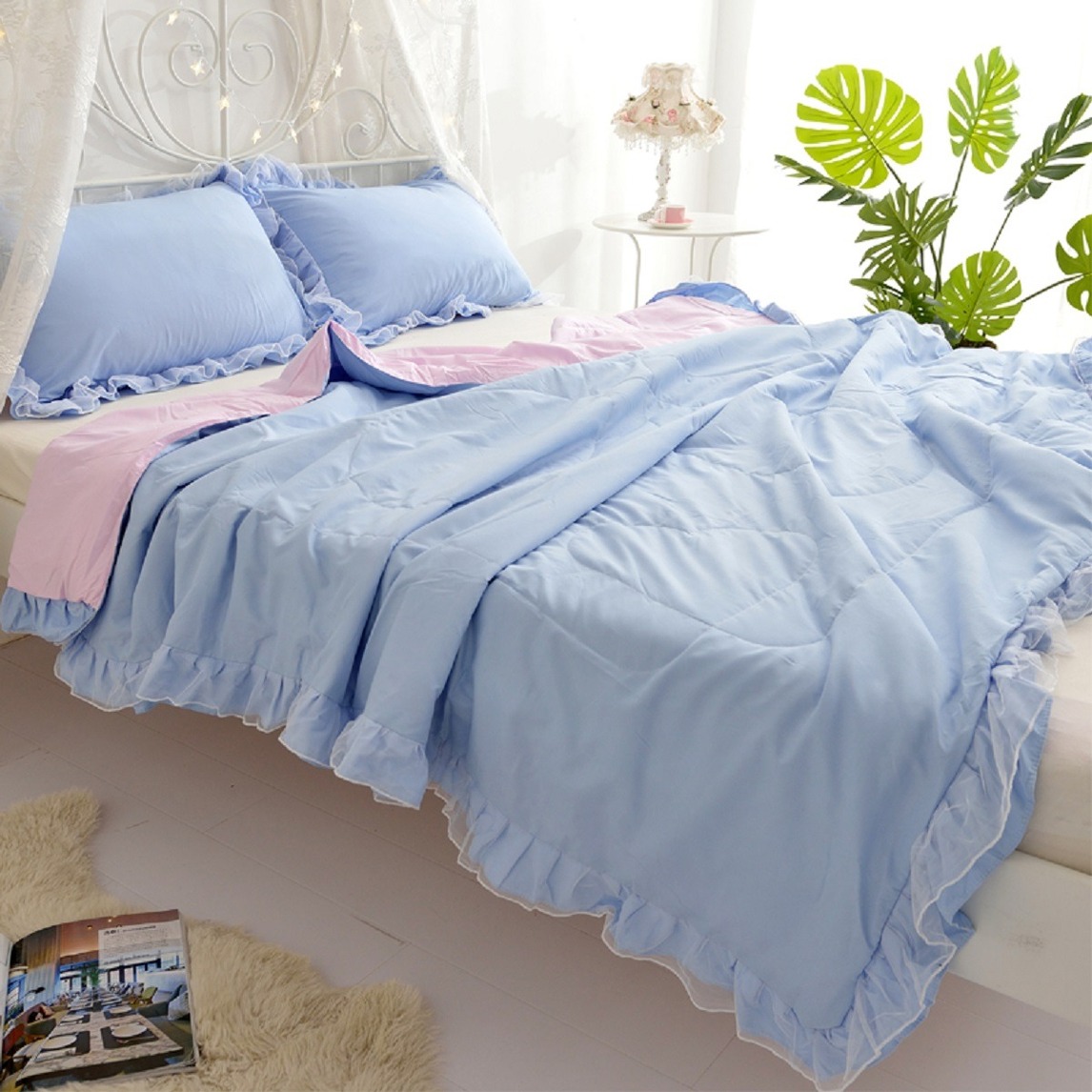告别了严寒,热流总是会来袭,一款轻薄的夏被,不仅能让你睡得更舒服,也能为卧室稍做点缀,纯蓝色的设计,优雅的荷叶边点缀,搭配绿植的清新,让卧室的单调一扫而空,给你舒适沉稳的好睡眠。