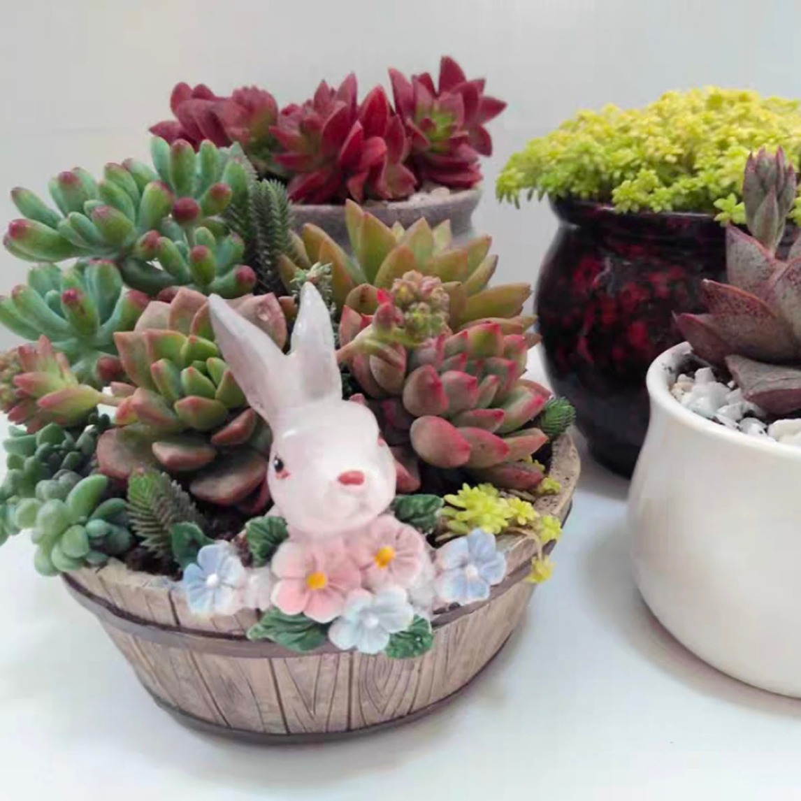 阳台那么宽,应该种上一点绿植,这个可爱的树脂兔子花盆,本身就很养眼有趣,种上任意一种多肉,都能让阳台充满生机。