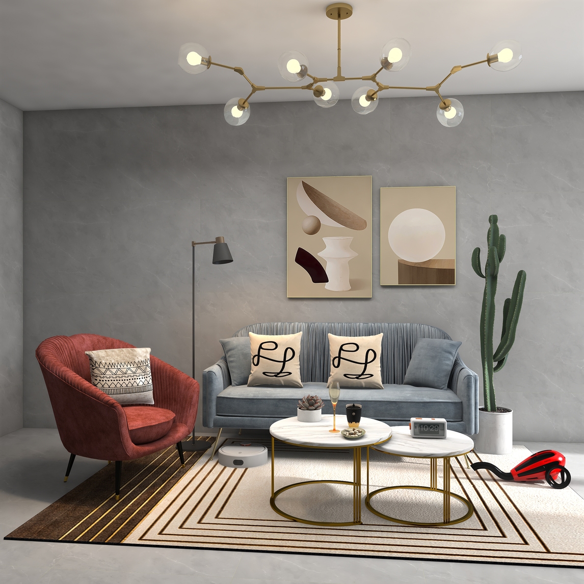 莫迪兰灰也可以这样混搭(E)---这么好看的通体瓷砖可以充当高级灰莫迪兰色,再配搭上轻奢家具更显时尚高档又耐用。
