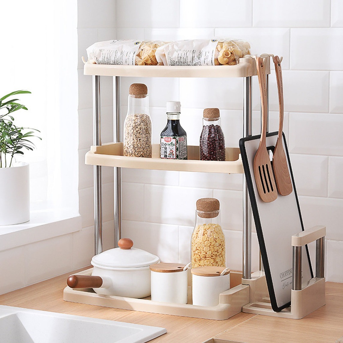 烹饪工具的收纳多分布在两个地方,一个是放在置物架上,一个是收进抽屉里。类似于炒菜刀铲、刀具等小件厨具不适合摆放,针对这些特殊的餐具,可以通过置物架挂在上面,用的时候伸手可得。