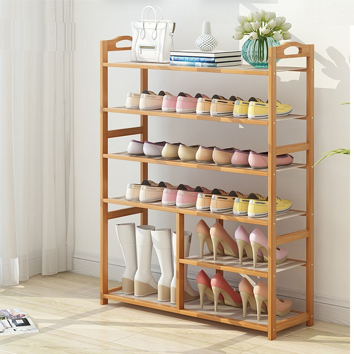 鞋架可以说是进门玄关不可缺少的家居用品,家里有了鞋架,就可以很好的收纳鞋子,因为每一个人鞋子会有很多双,有了鞋架。这样就不占用地。,