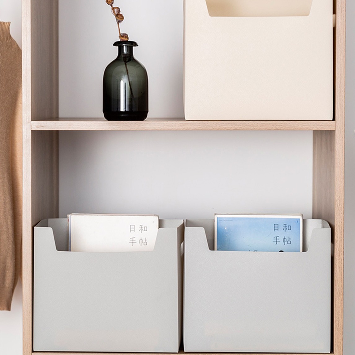 桌面书籍收纳盒,大容量收纳,材质轻巧,闲置可折叠,不占空间,文件书籍放心收纳,让桌面一片清爽。两边还有小提手,移动非常方便~