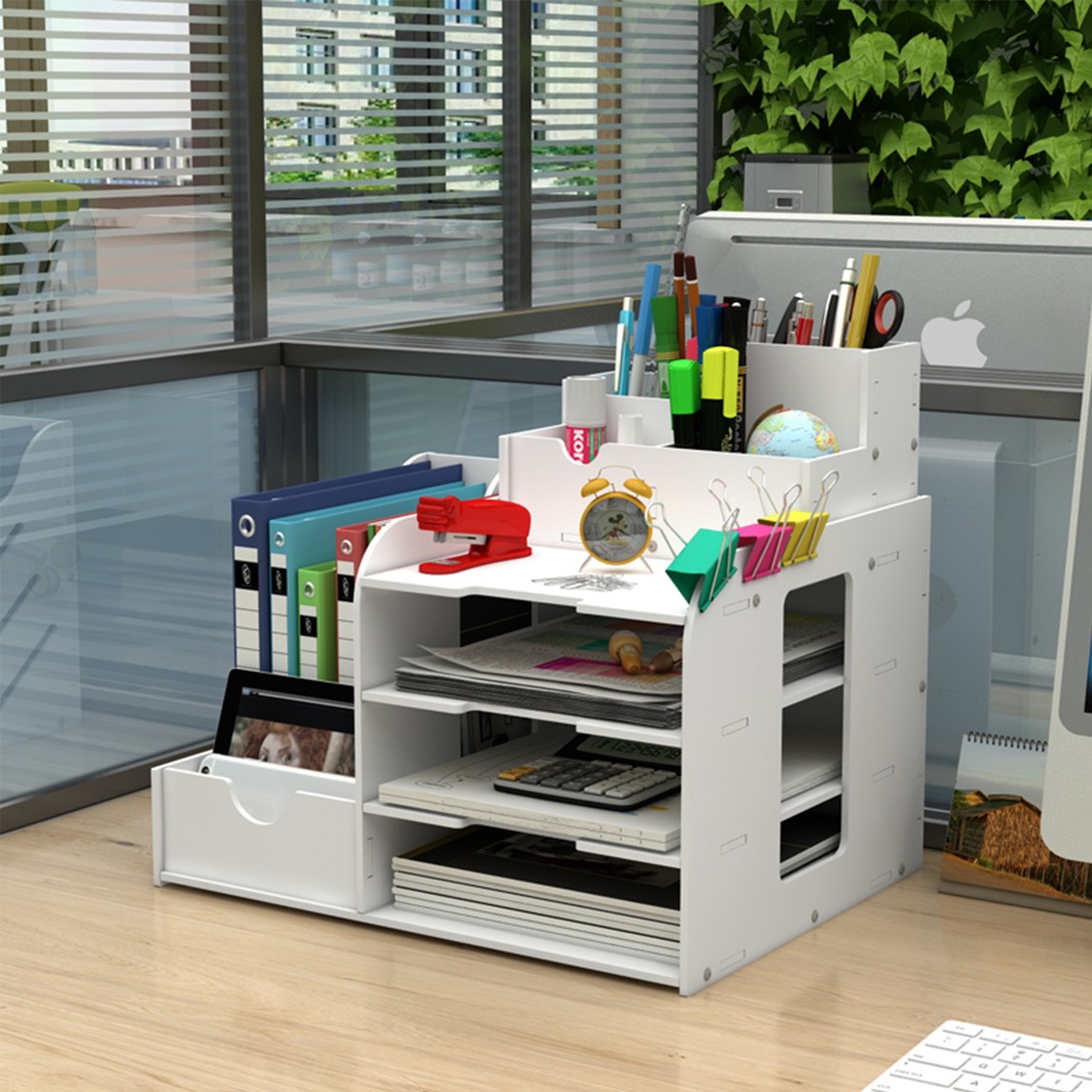 办公的你,桌面是否乱糟糟?快用置物架整理一下吧!多层收纳,错位设计,个性时尚,顶部还可以放些摆件和小闹钟之类的,整洁有序,愉悦心情~