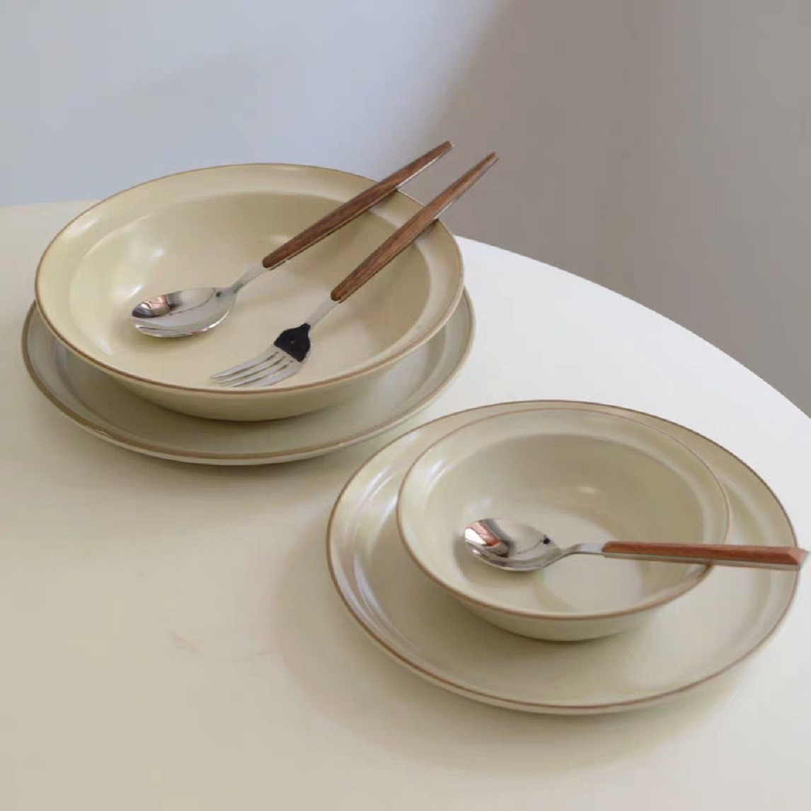 日式磨砂复古餐具,做旧风餐盘、汤盘、米饭碗、菜盘、甜品碟等,颜色非常复古,打造属于你的餐厅,随手可拍的ins风照片。