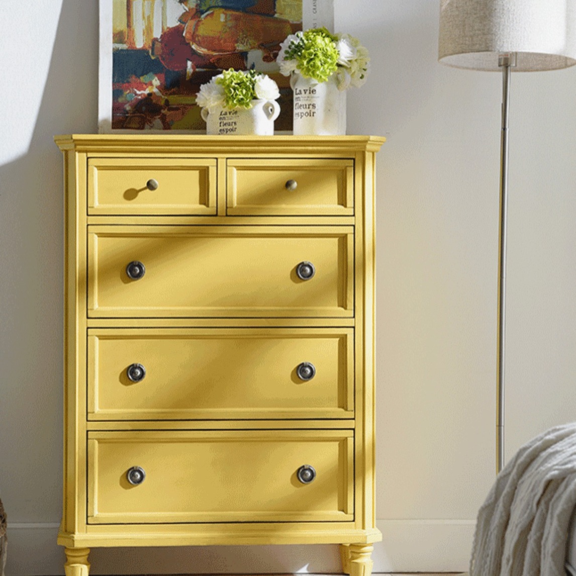 时尚的美式风格客厅,空间以素雅为主,一款实木材质的多层斗柜,做工精致样式百搭,尤其是黄色的主基调,赋予空间不一样的储物魅力。