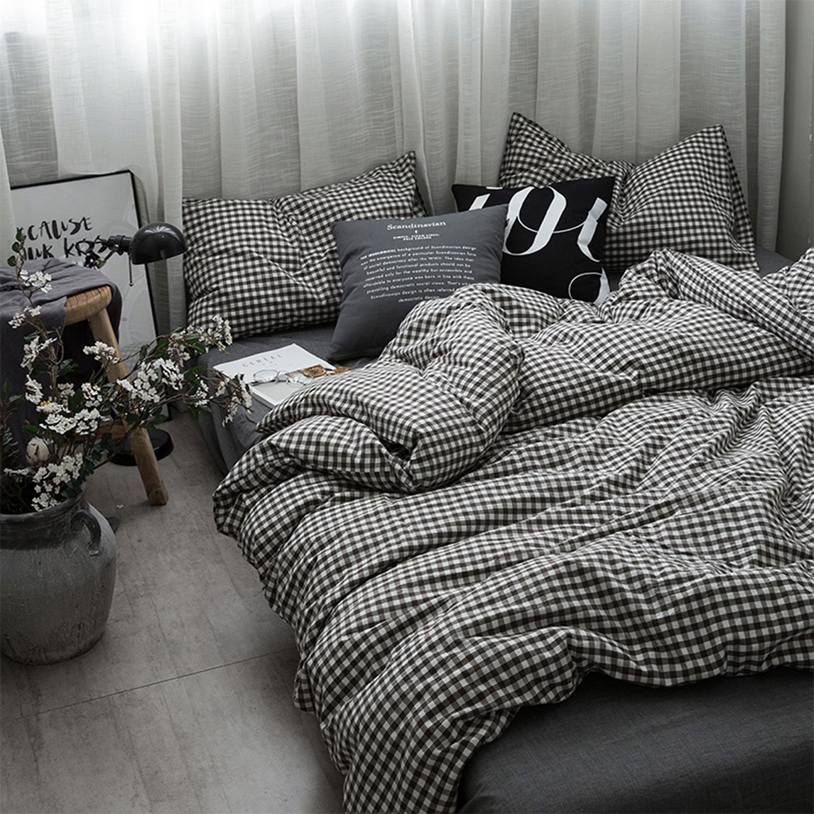 日式风格是一种素朴随意的风格,注重实用与自然风,卧室的摆设以简洁为主,MUJI风的格子四件套,搭配原木风的床和家具,自有一番小清新风的腔调。
