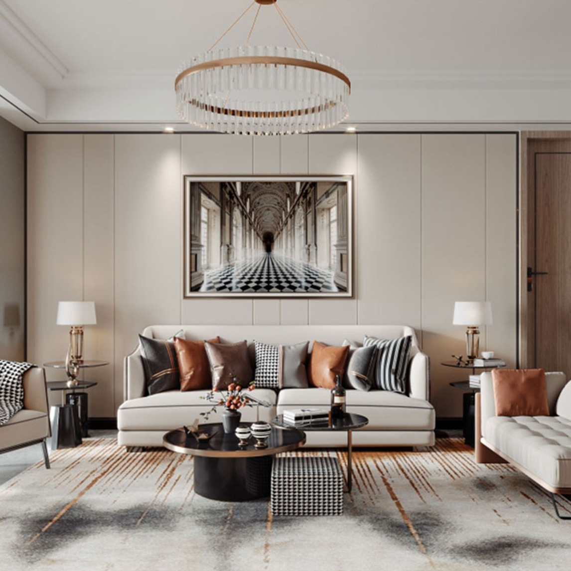 轻奢风格让客厅构造一股艺术气息的美感,不是土豪的“贵气”,这是一股生而舒适的气派质感。 ➊双透水晶灯,奢而简约的造型,不会过于繁杂的手工艺,金属与玻璃质感的轻微碰撞,让客厅造就一股复古气息。 ➋现代...展开