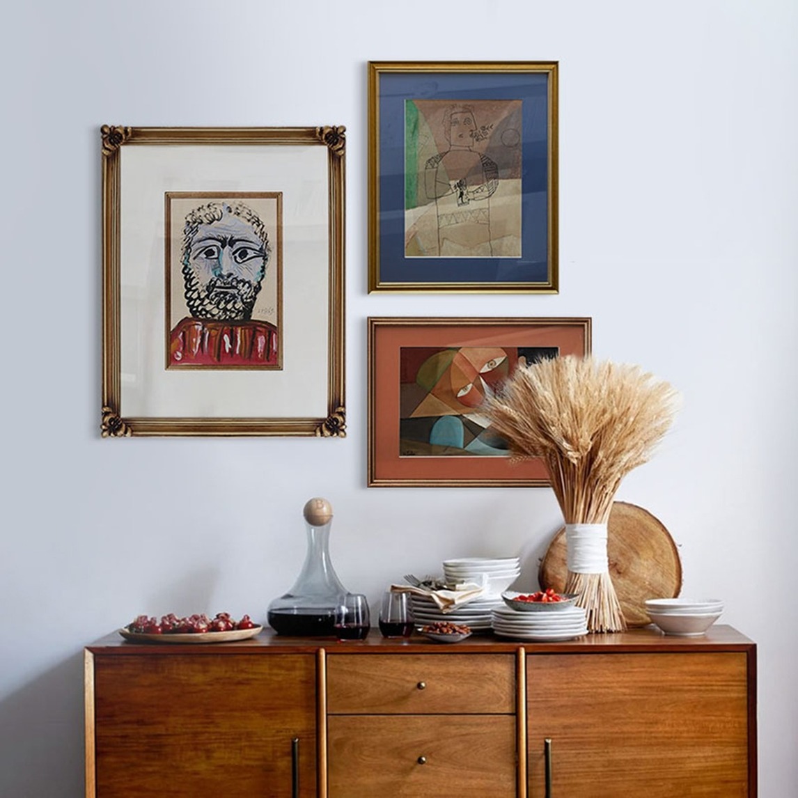 整体为欧式的风格设计,这款实木的边柜非常的大方,而且非常的实用,颜色也非常好搭配其他的家具,麦穗干花的寓意非常好,寓意着今年是一个丰收之年,再配上简单的壁画,简直可称为完美。