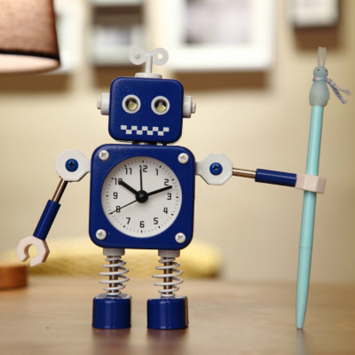可爱造型,孩子看了都喜欢,静音机芯,指针走动时寂静无声,不会吵到学习或睡觉,金属外壳,从桌子上跌落也安然无恙。
