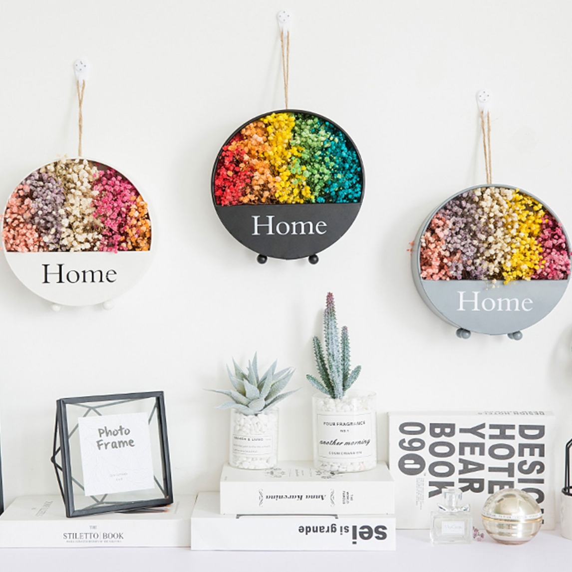 植物壁挂就是将植物种植在容器中,然后挂在墙壁上作为一种装饰来摆放。它丰富了室内的景观,墙壁上塑造出一幅精妙的活壁画。