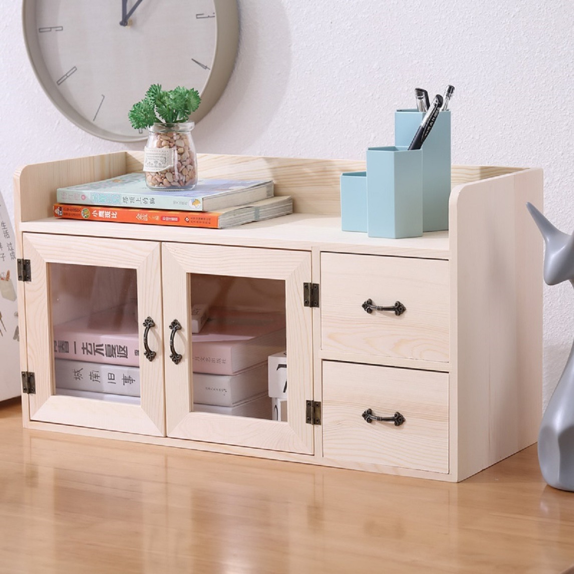 书桌有各种书籍、文件、摆件、个人物品等,全部堆在一起显得很凌乱。台面摆放一个小型书柜,可以让台面更整洁,看着更舒适。