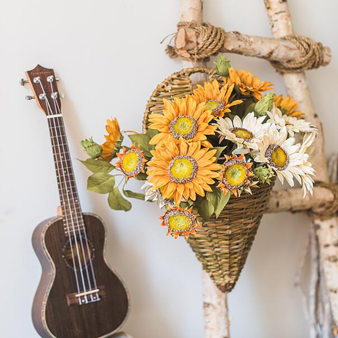 仿真的向日葵,采用绢布染色工艺,枝条质地,叶子仿真程度很高,看着高端大气上档次,摆在阳台,温暖向阳,打造复古格调。
