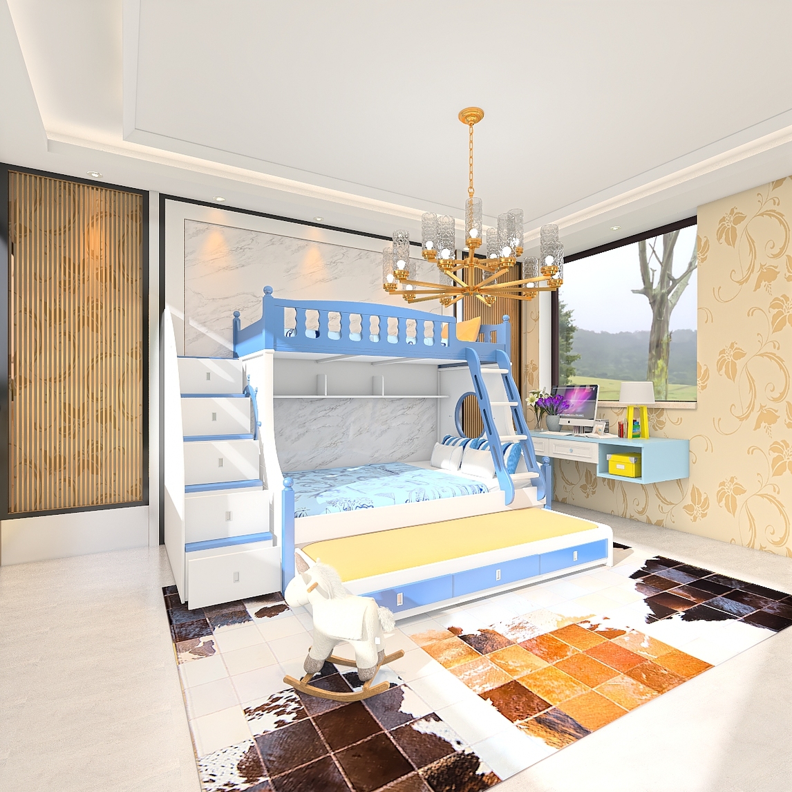 小户型儿童房双层床高低床玩出生活多种可能,打破小户型的极限,演绎多种玩法颠覆对小户型的认知,休息玩乐亲子均不误从小培养宝贝们亲情,缤纷色彩更温馨