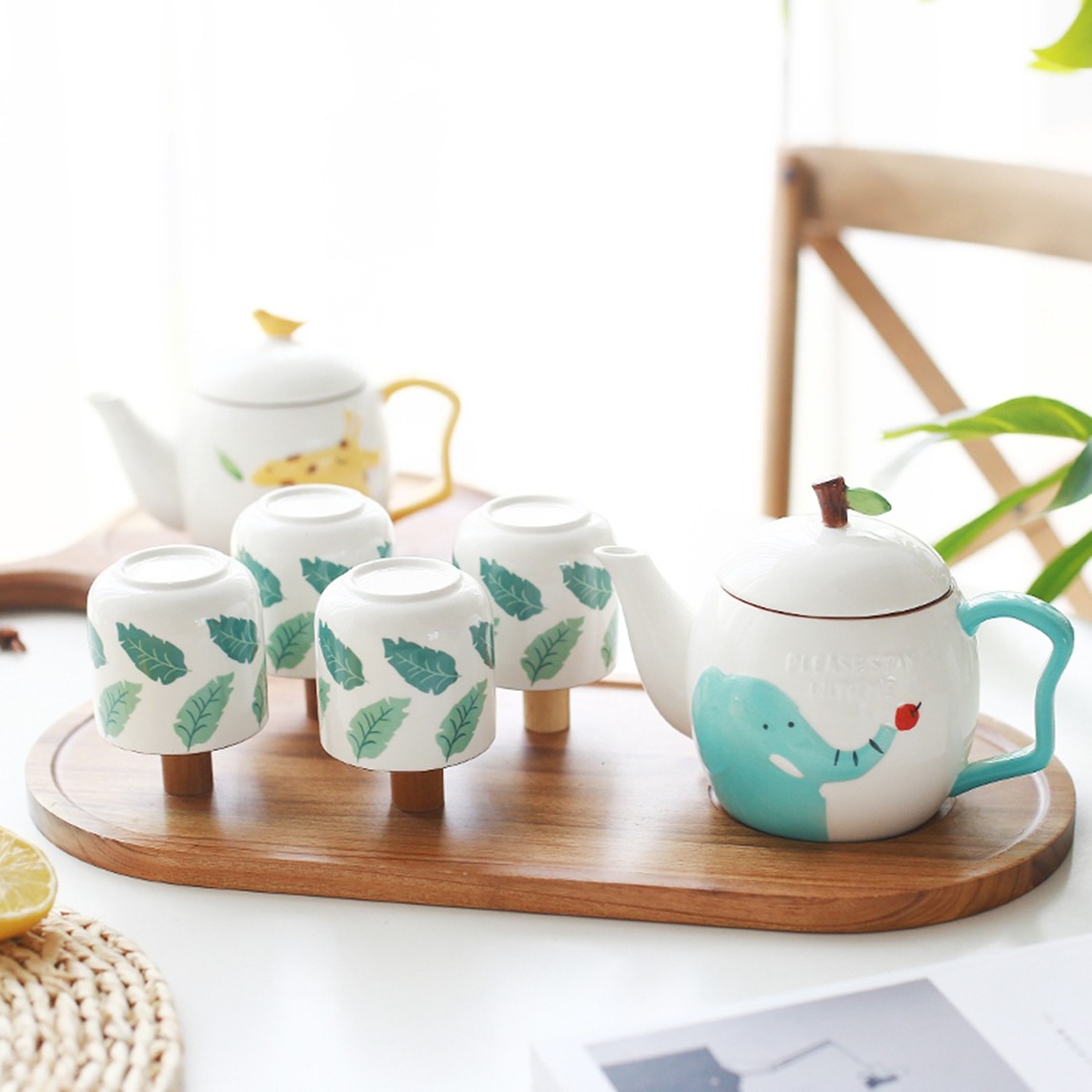 日式浮雕动物茶壶套装,搭配上木质的支架,拥有其独特的魅力,卡通浮雕图案,简约不失可爱,随意摆放都是一道风景线。