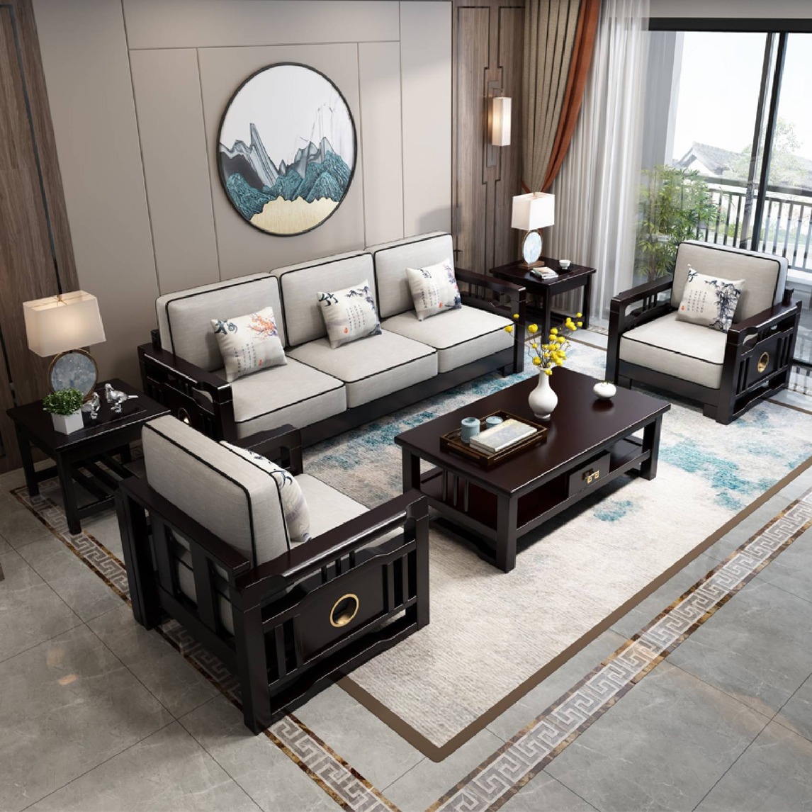 新中式实木沙发现代简约设计,实木框架,高端大气,取材坚硬的橡胶木,木质稳定,结实耐用。很适合现代年轻人的需求。黑白色彩是一种经典的搭配。落落大方,非常有艺术感。搭配任一款家具,尽显浪漫生活气息,满足您...展开