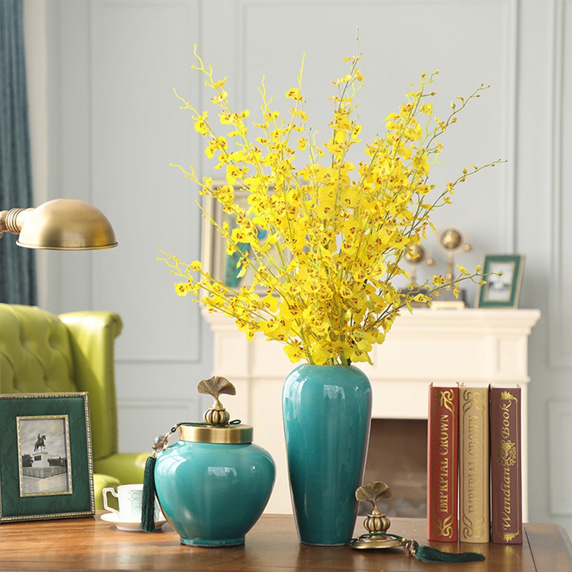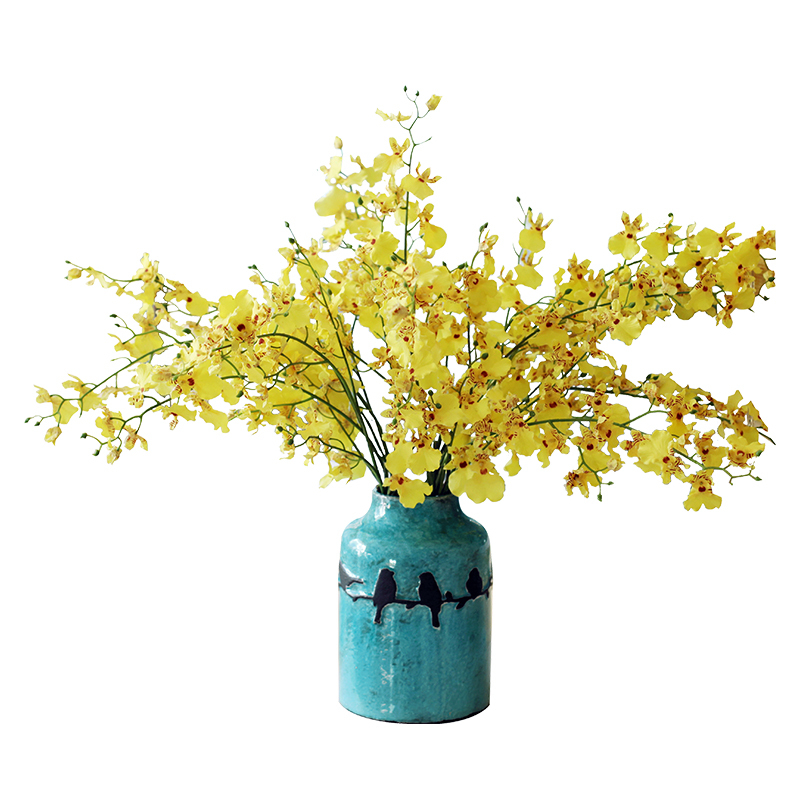 一物两用,亦是花瓶亦是摆件,和黄色的跳舞兰搭配在一起,让客厅呈现了舒适、热情、温馨祥和的感受,是一道靓丽的风景线。