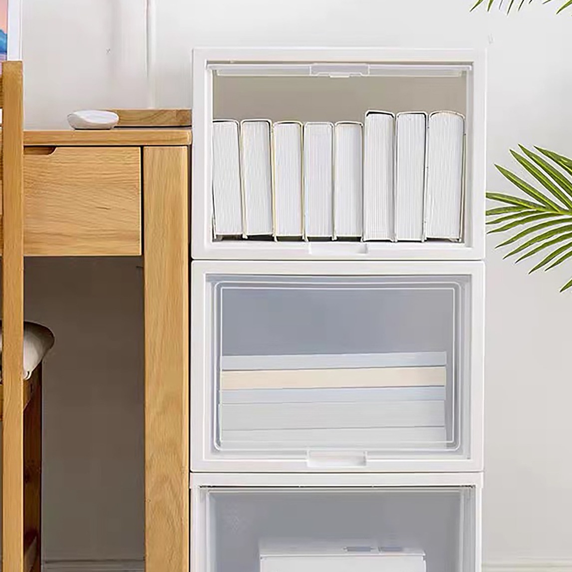 日常学习之后,总是苦于书的摆放。其实完全可以靠小小的收纳箱搞定,把日常不经常阅读的书放在里面,同时可以专门用个小收纳放一些重要文件等东西。最重要的是上面要一个透明台布,这样落灰的时候,轻轻一擦就好啦!