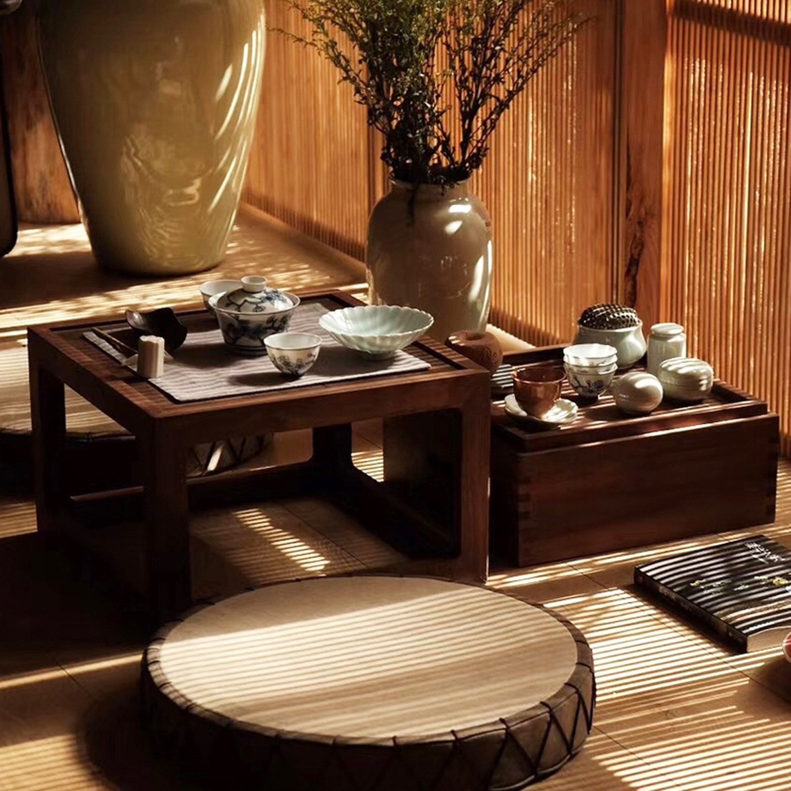 将茶道桌摆在阳台上,简单的配合着地毯与坐垫,可以让我们在闲暇的时候,在这里静静的享受一下生活,静下心下品下茶,感受生活的美好,缓解一下精神压力。