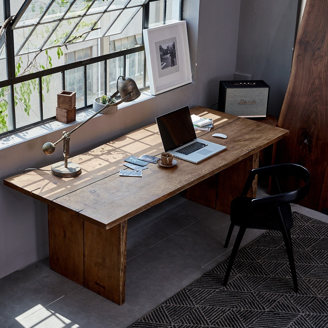 做旧的墙面,铁艺窗,铁艺灯饰搭配 做旧木桌和精致座椅 还有随意摆放的多件小配饰 自然又带着浓郁的复古气息 给生活工作增添一丝生机