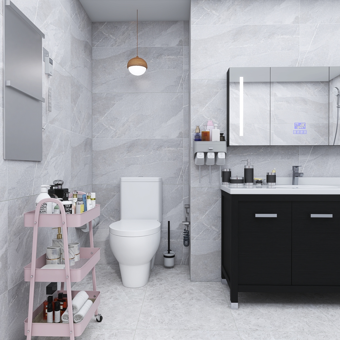 设计师用时下广受年轻群体喜爱的黑白灰经典搭配,显得浴室干净利索,然后用质感满满的一字型的黑色淋浴房搭配白色马桶,形成了浓郁的工业风。