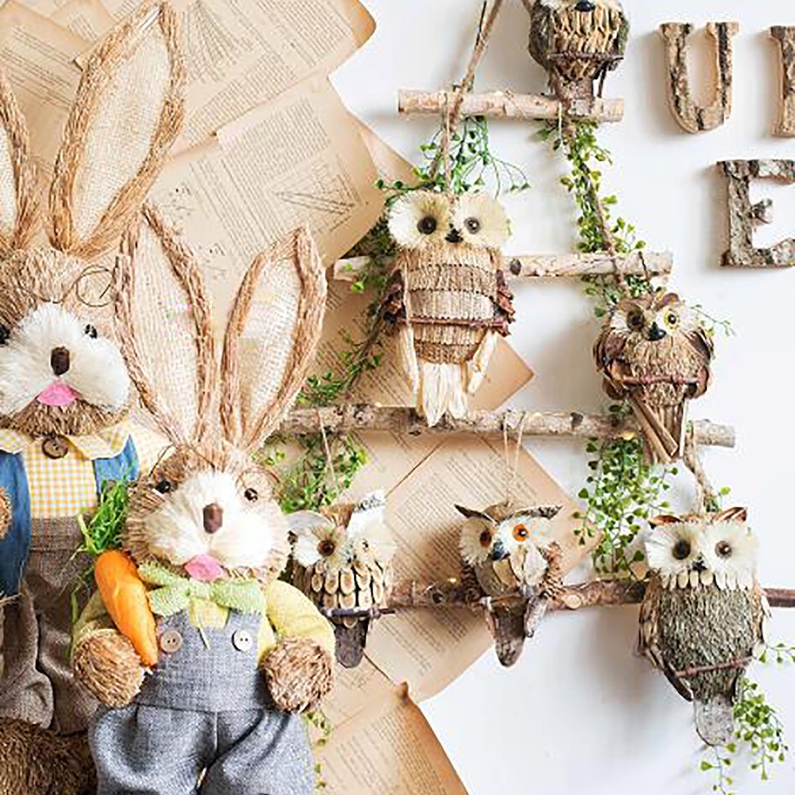 居家装饰,就是要打破既定的格局,这样才能延展无数种可能,草编的猫头鹰摆件,是非常有田园生机的居家摆件,搭配同样是草编的兔子,动静结合,更添生机。