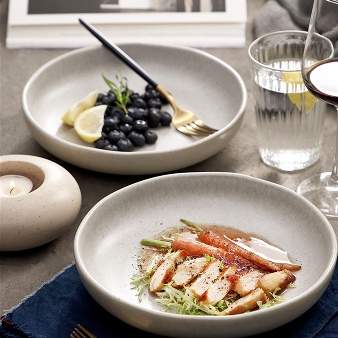 北欧风格的陶瓷深汤圆盘,看似简约的设计,实用性还是很不错的,素雅复古的造型,与美食搭配起来,也同样不失仪式感。