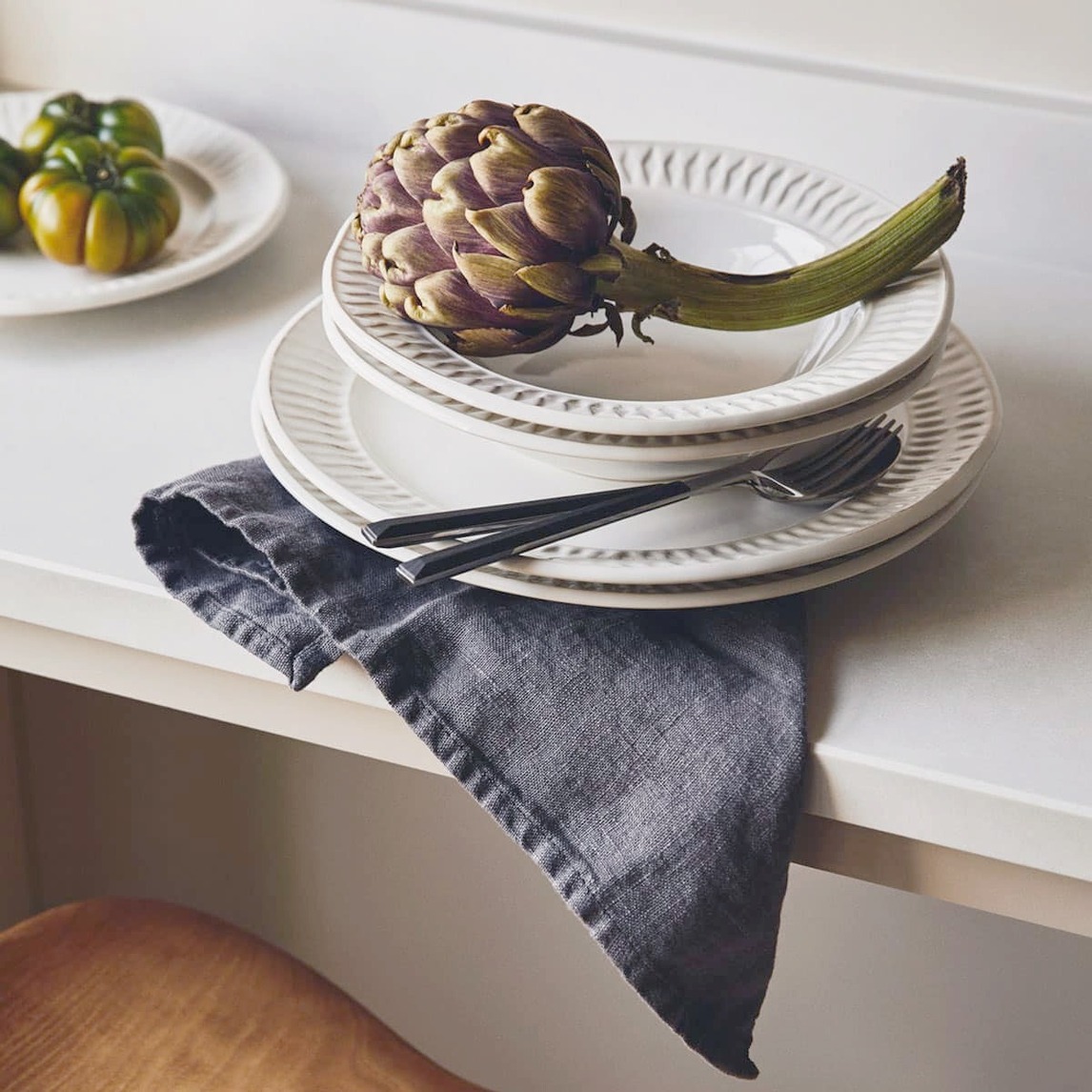 法式风格代表着简约舒适,精致的复古餐具搭配上亚麻材质的餐具,看起来更加自然简约,搭配上黑色做旧的餐具,更是点睛之笔。
