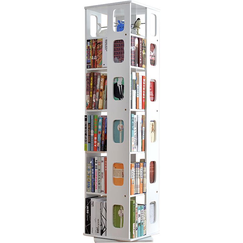 旋转书架设计充分利用了墙角难以用到的地方,满足不同分类的书籍收纳,纵向书架利用靠墙位置突出来的部分,不会占用太大的地面面积,但是能提高收纳的作用。