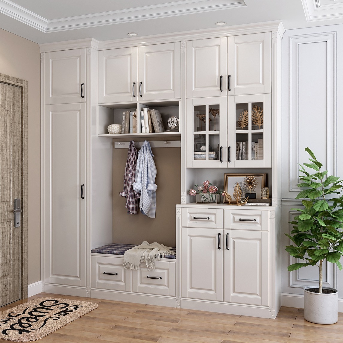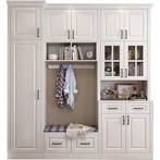 简欧风格设计,入户做鞋柜,增强了收纳性,使入户与餐厅空间整洁有序,凌乱杂物有处可放。布置一盆绿植,给人清新的视觉感~