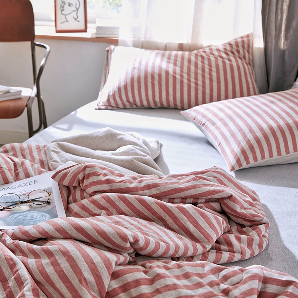 肌肤总是贪恋温柔的触感,这一款条纹的夏凉被就拥有让人沦陷的柔软触感,亲肤舒适,非常春华,填充物采用亲水性纤维,透气不发闷,让你更好地入睡。