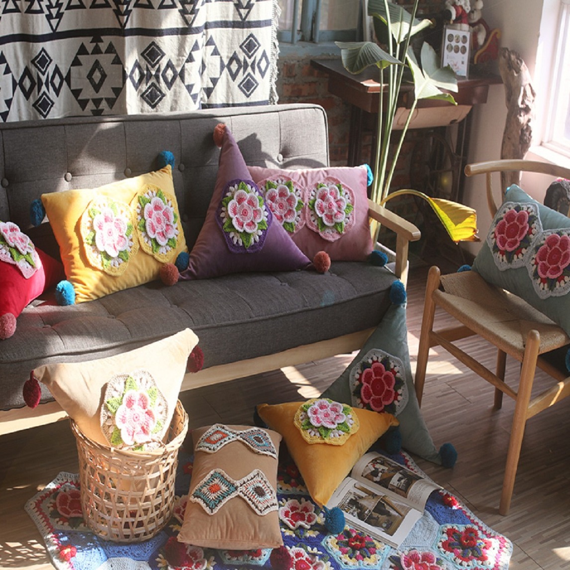 纯手工编织抱枕,摸起来、用起来、看起来都极具质感与美感,配色花型都是民族风,像经过时间沉淀的老物件,除了温暖还有时光的味道