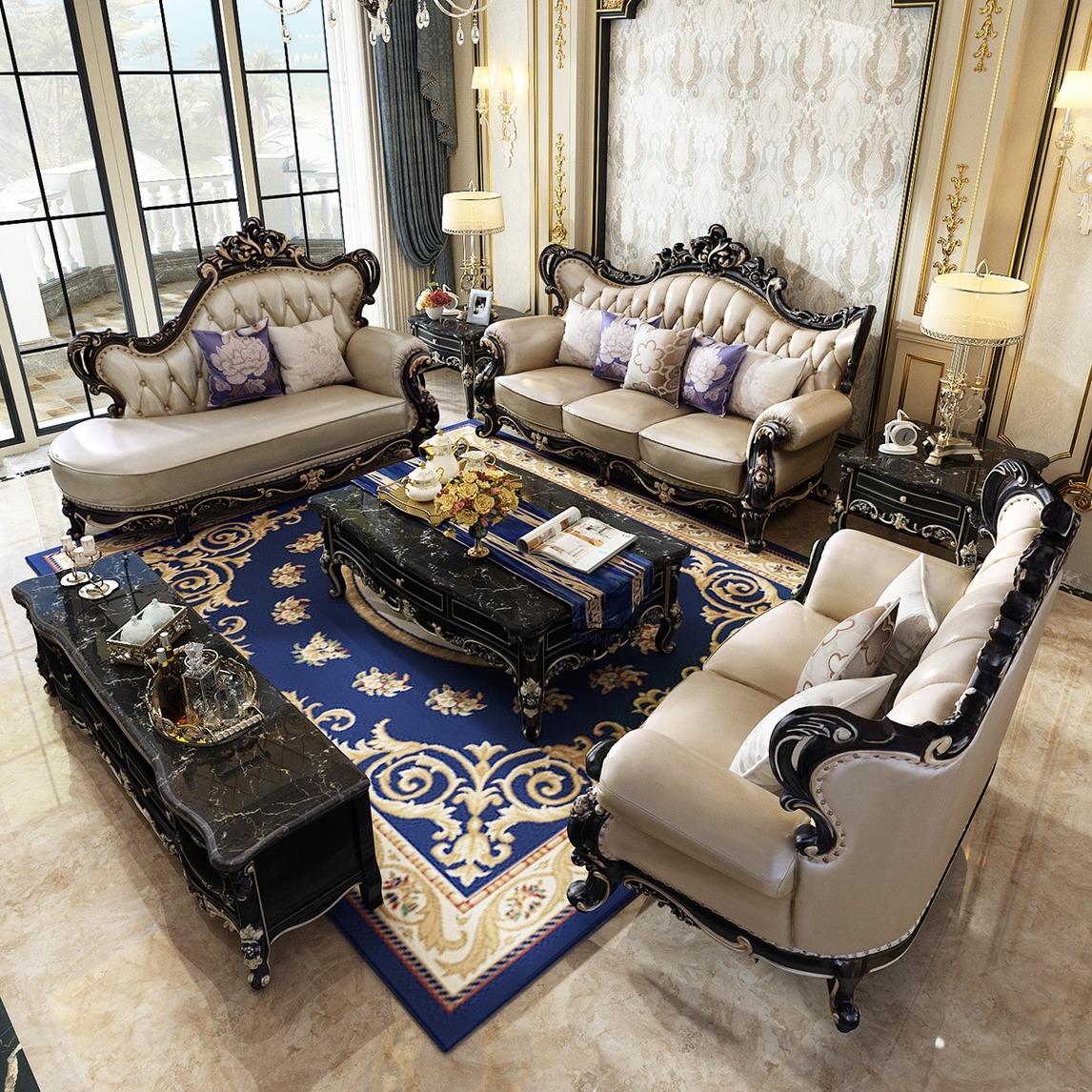 环保健康油漆,双面雕花设计,欧式理念设计,全实木框架手工深雕,进口头层真皮沙发组合,配合不同的组合配套,尽享奢华!