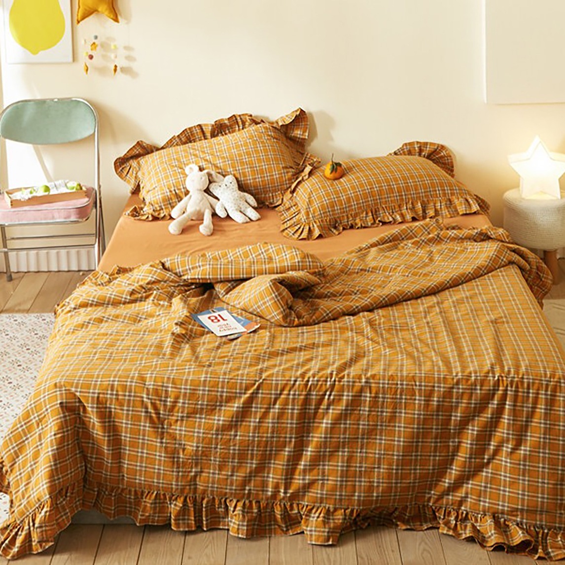 手工打褶荷叶花边,ins风格子设计,复古不失现代感。采用水洗棉面料自然褶皱感,亲肤贴身,透气舒适。水洗工艺处理后的面料表面色调光泽柔和、手感柔软,并在水洗后轻微的皱度中体现出几分旧料之感,让您初次接触...展开