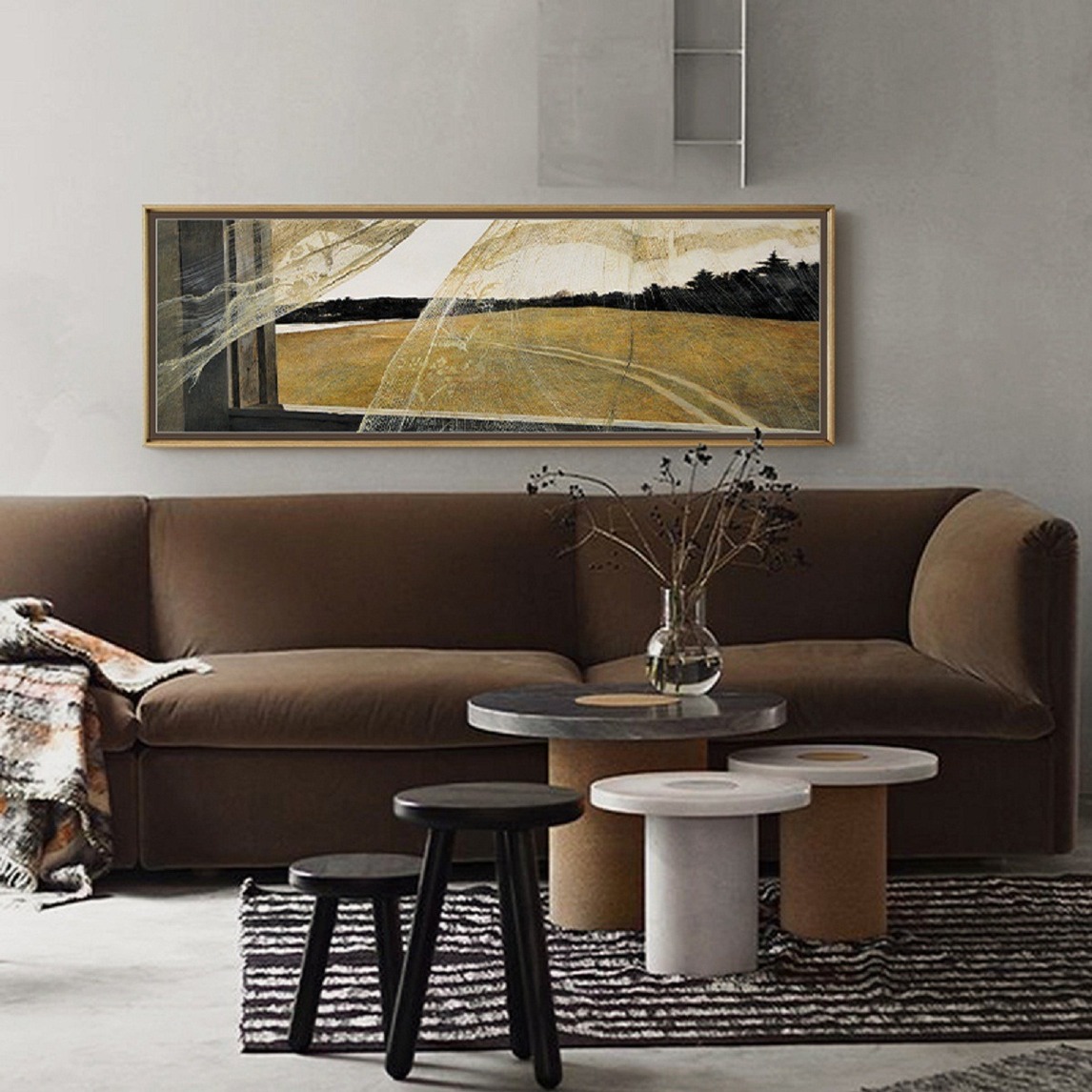 北欧风格的loft风格,充满着年轻人喜欢的复古情调,成熟而稳重,而在墙面上搭配这款以风格为主题的复古横幅挂画,可以让客厅更有艺术感。