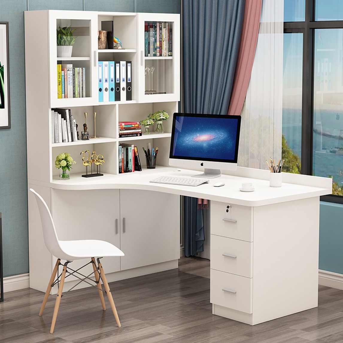 拥有一间设备齐全的书房,是一件困难的事情,有的放了书柜,可能办公桌就放不进去, 所以转角书桌柜就发挥出了它的价值。即能拥有书桌,也可以拥有书柜,真的是一物两用。
