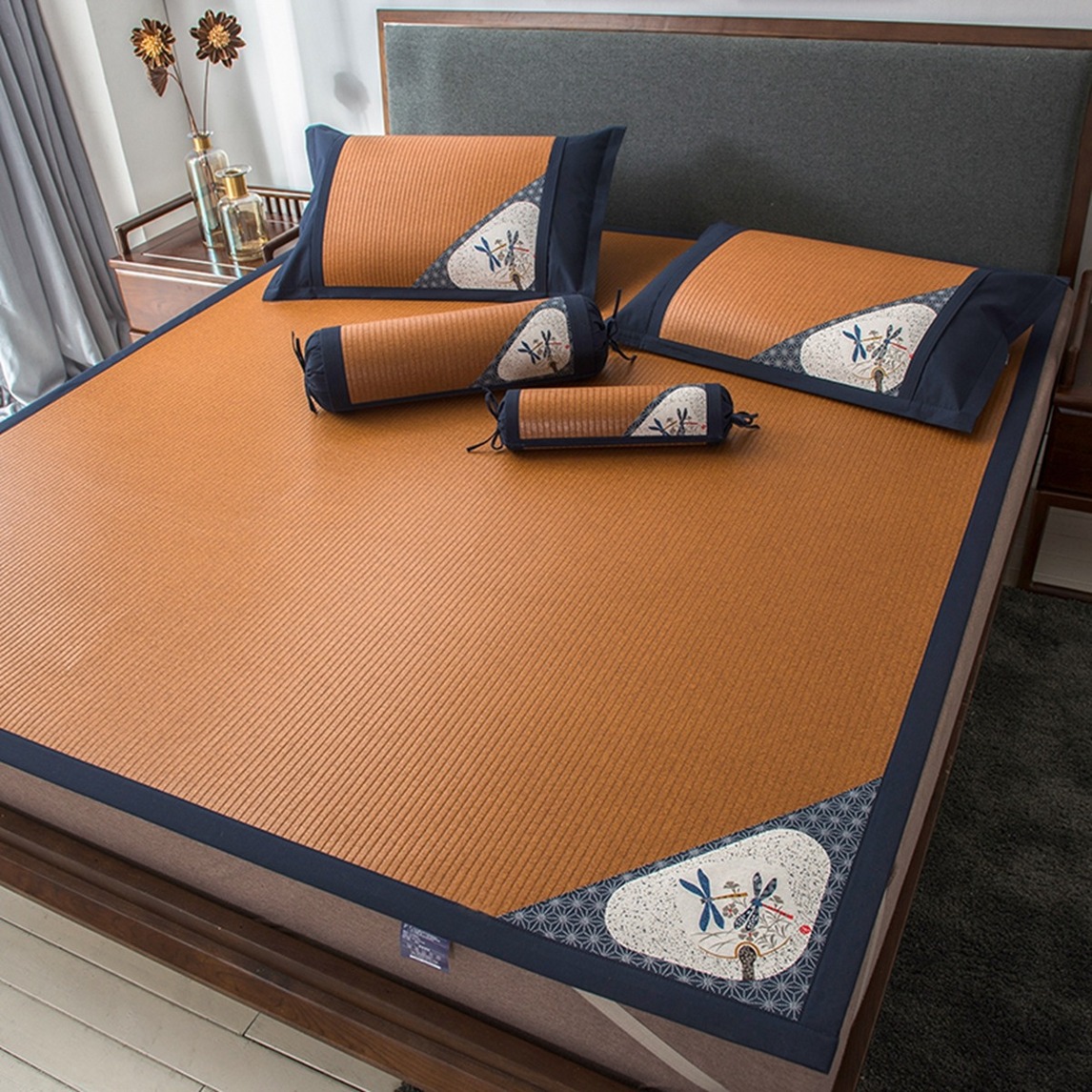 这款凉席外形整体采用古色古香的藤条原色渲染,保留自然原色的古朴美感与质感,表面经过手工编织,细致精密,能够保持宜人的温度。