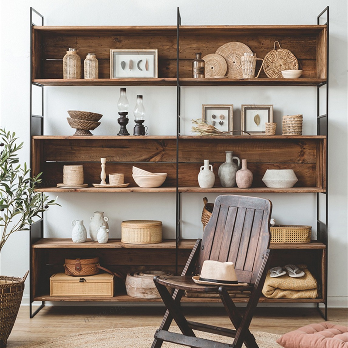 简约又不失质感的美式书架,铁艺与实木的结合,打造出大气的书房收纳美学,可以摆放各种物品,还空间一个整洁宽敞的视角。