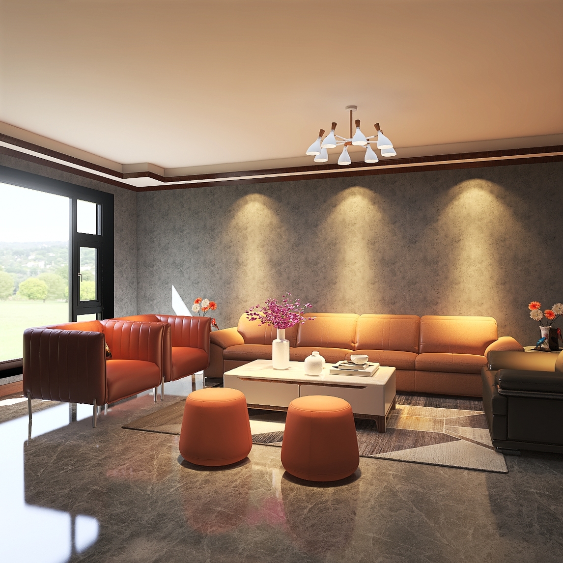 客厅是家的门面,也是享受生活的重要场所,想要成为品位不俗的生活家,真皮沙发是不可或缺的,搭配上简约的茶几,整体感觉显得非常的时尚有格调,