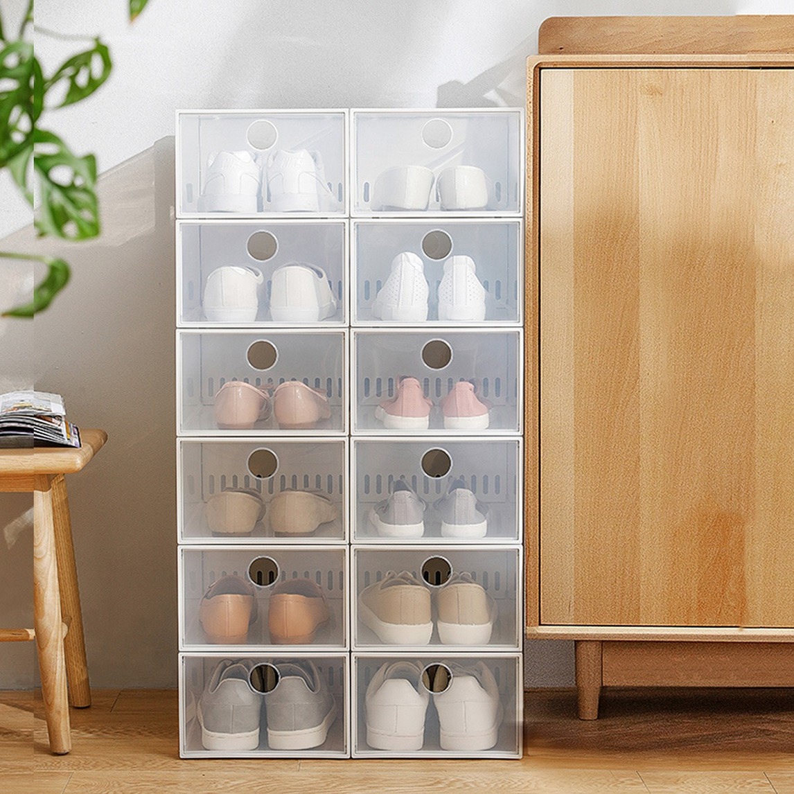 鞋子多,找起鞋子翻箱倒柜,玄关乱七八糟?有了它,全透明鞋盒,找鞋一目了然,一盒一双,叠加摆放,整整齐齐,还能防灰防尘,很不错哦~