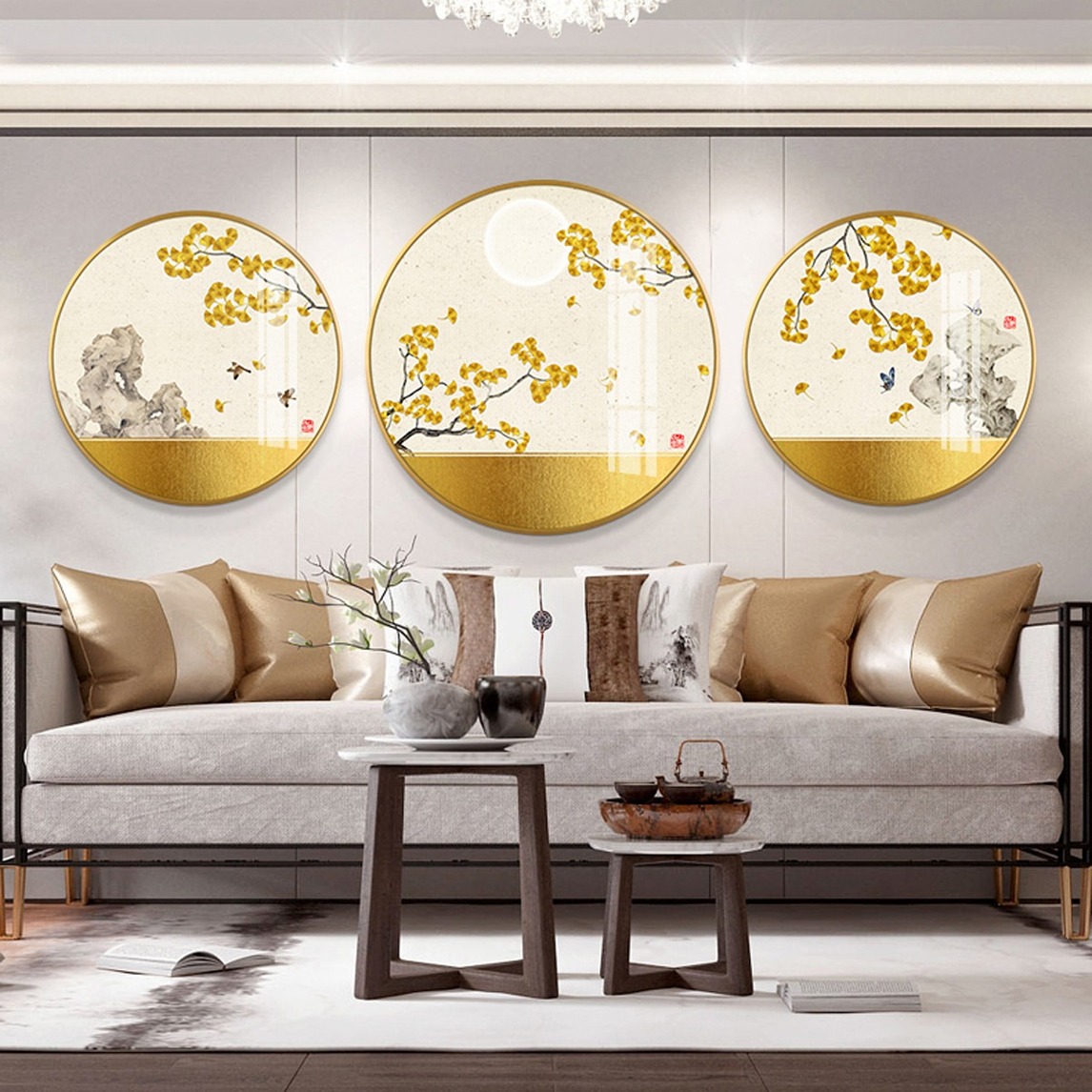 五种色彩的银杏叶各具形态,色彩搭配协调,寓意和气吉祥、阖家安康;传统金箔工艺加彩绘,结合了传统经典美与时尚的现代感,中西合璧,营造温馨活泼的居家氛围。