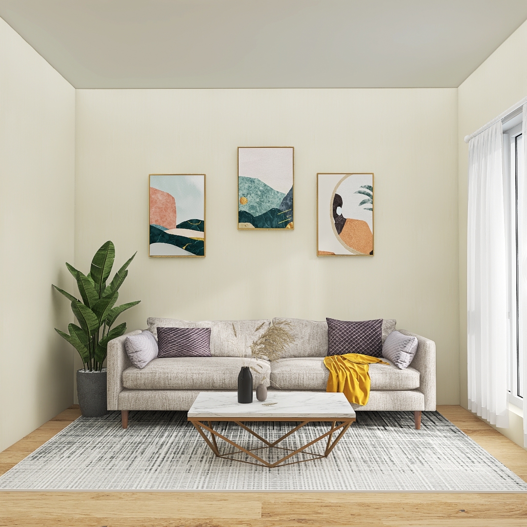 壁纸采用了暖色,这个颜色是充满善意和包容的颜色,光滑平整之中,带有一点点的浑浊感。方形茶几和沙发的衬托整个空间更加的动人