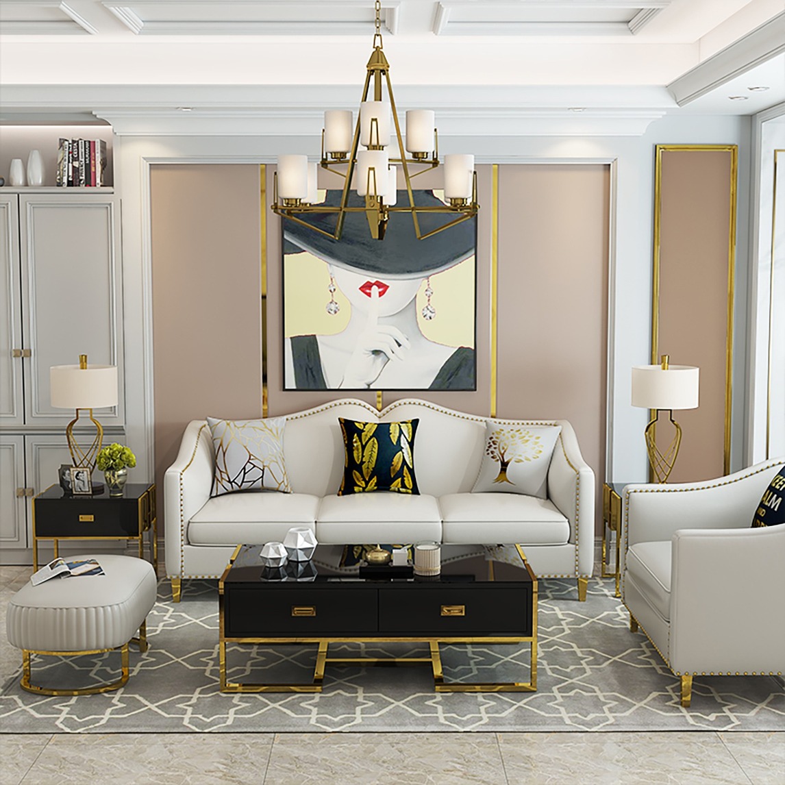 以浅色为主调,凸显素雅柔和的空间氛围。亮金色底框与简约造型形成对比,巧妙的色彩搭配显现出丰富的魅力,为空间注入简奢华丽的气息。