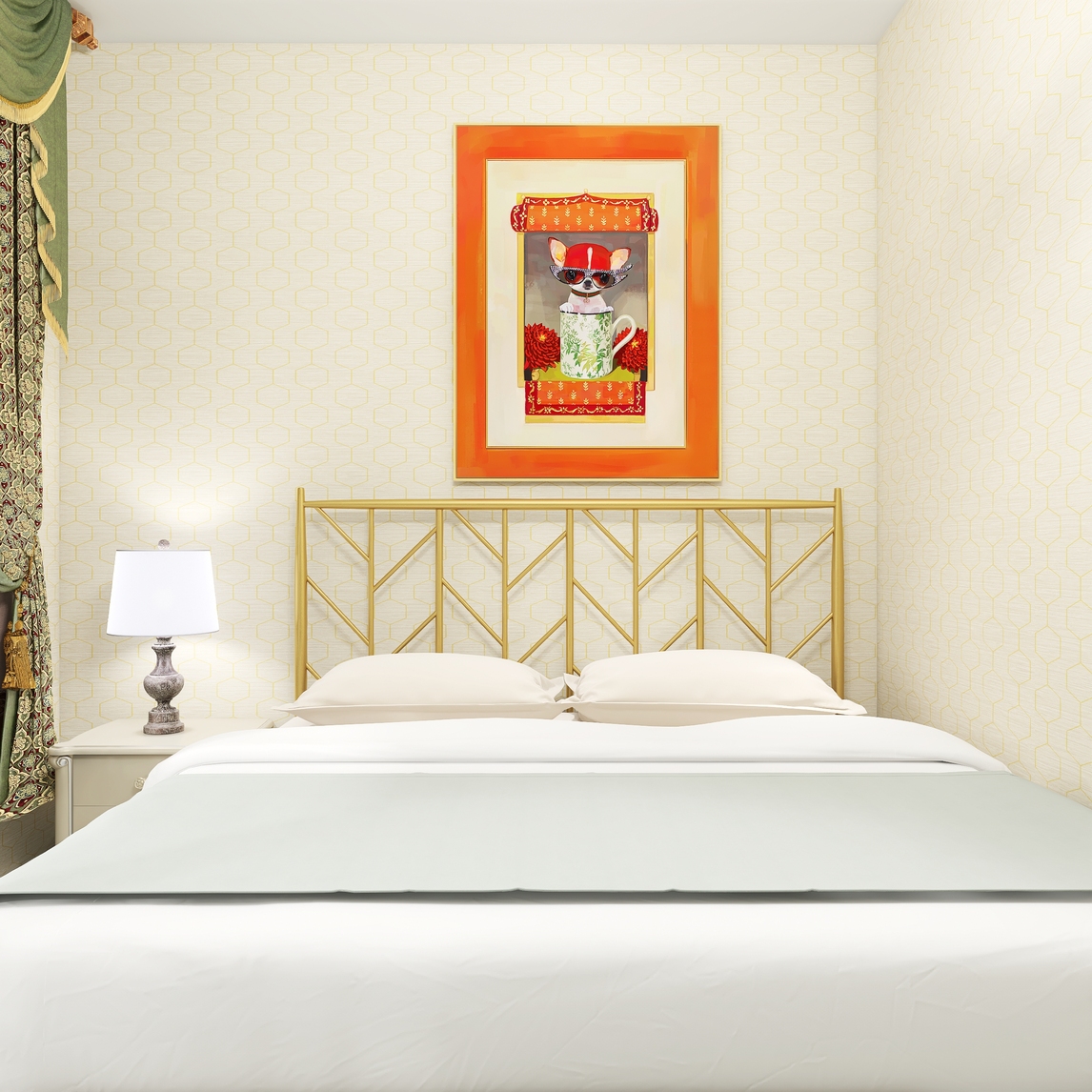 怀旧花色条纹,回到歌剧时代,纯色的铁架床超级好看实用,搭配床头柜收纳也一样复古感,轻巧的床尾凳,换装更加舒适一个愉悦的空间、一种尊贵的生活、一方独享的天地,都在这里寻求最合适的表达!